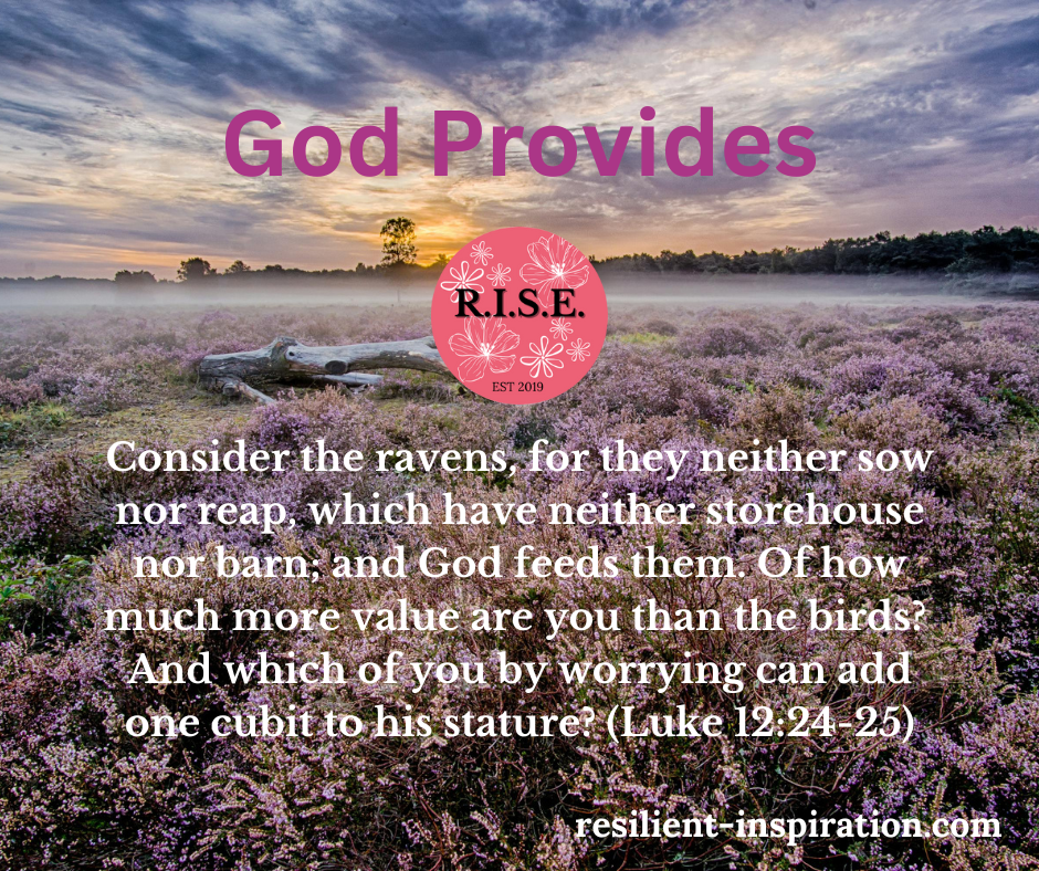 God providing for us is not just about financial resources. Sometimes we need healing, opportunities or to see the people we love and care about have the things they need too. There are times when we face grief, and we need to be comforted. We may need peace in our lives or struggle to know what’s next and be confused. God can provide the peace and wisdom we need to move forward in any situation we face.